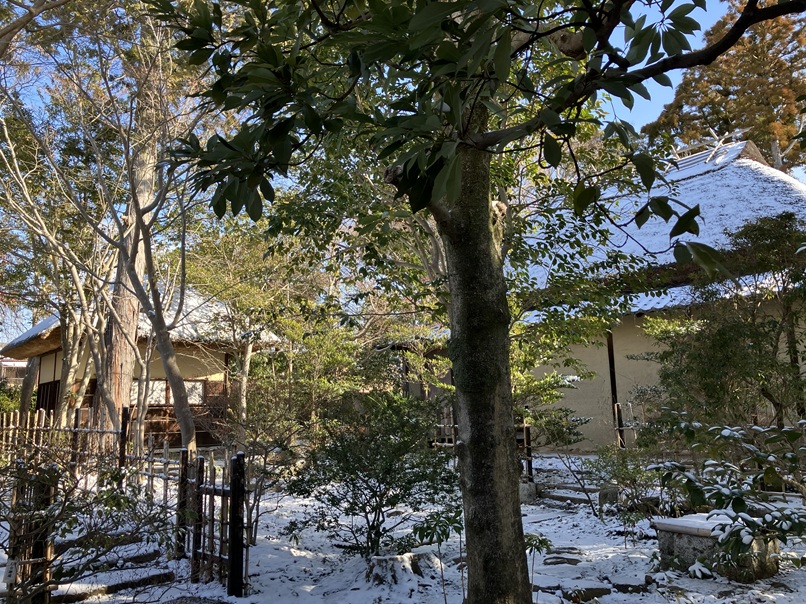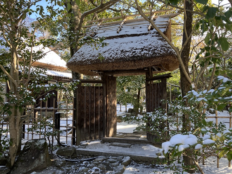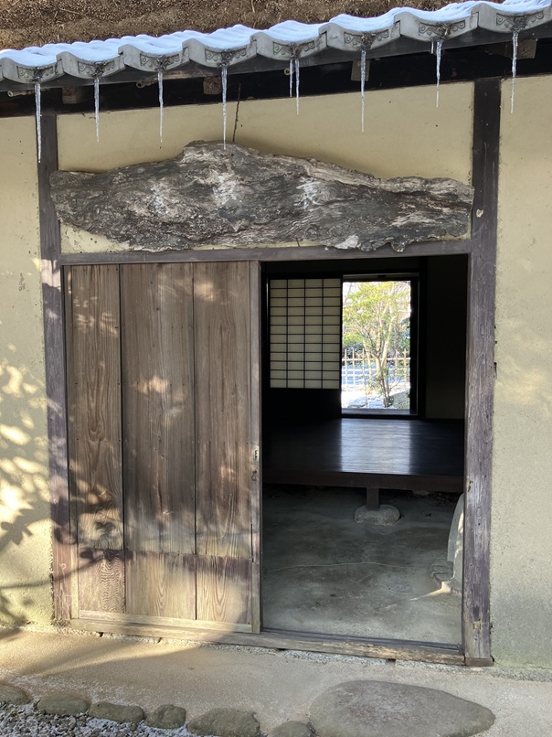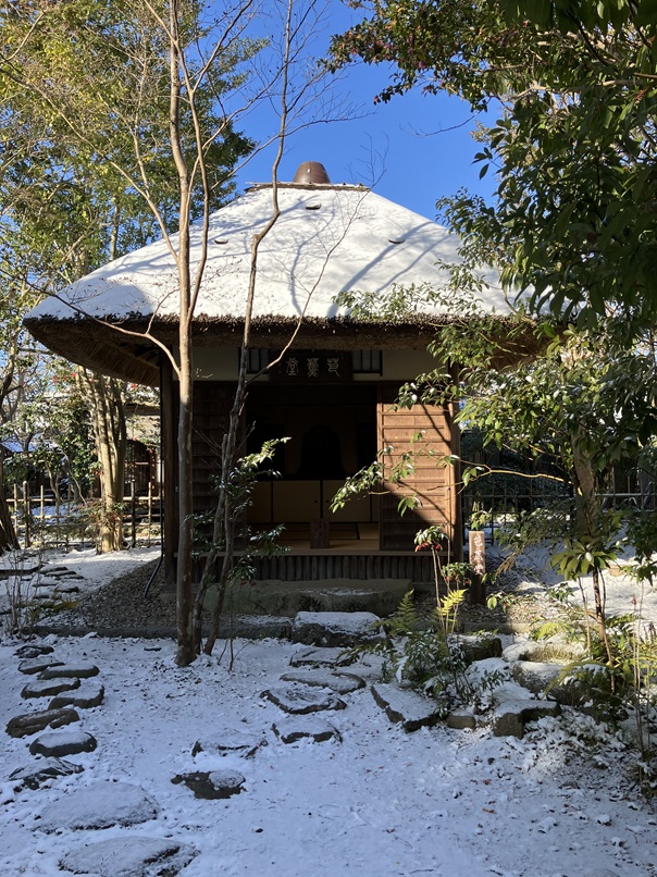蓑虫庵は雪化粧、庵の氷柱も俳句のたねになりそうですね。